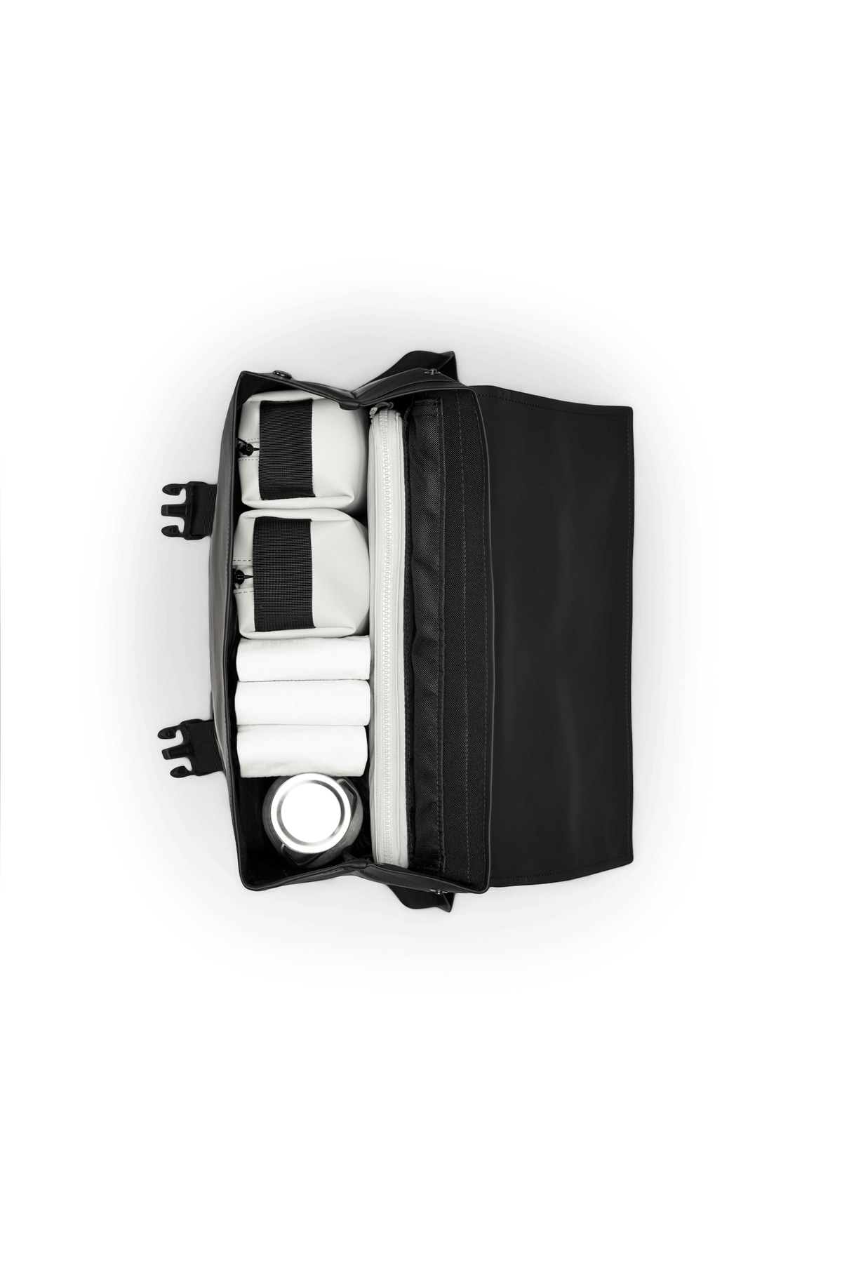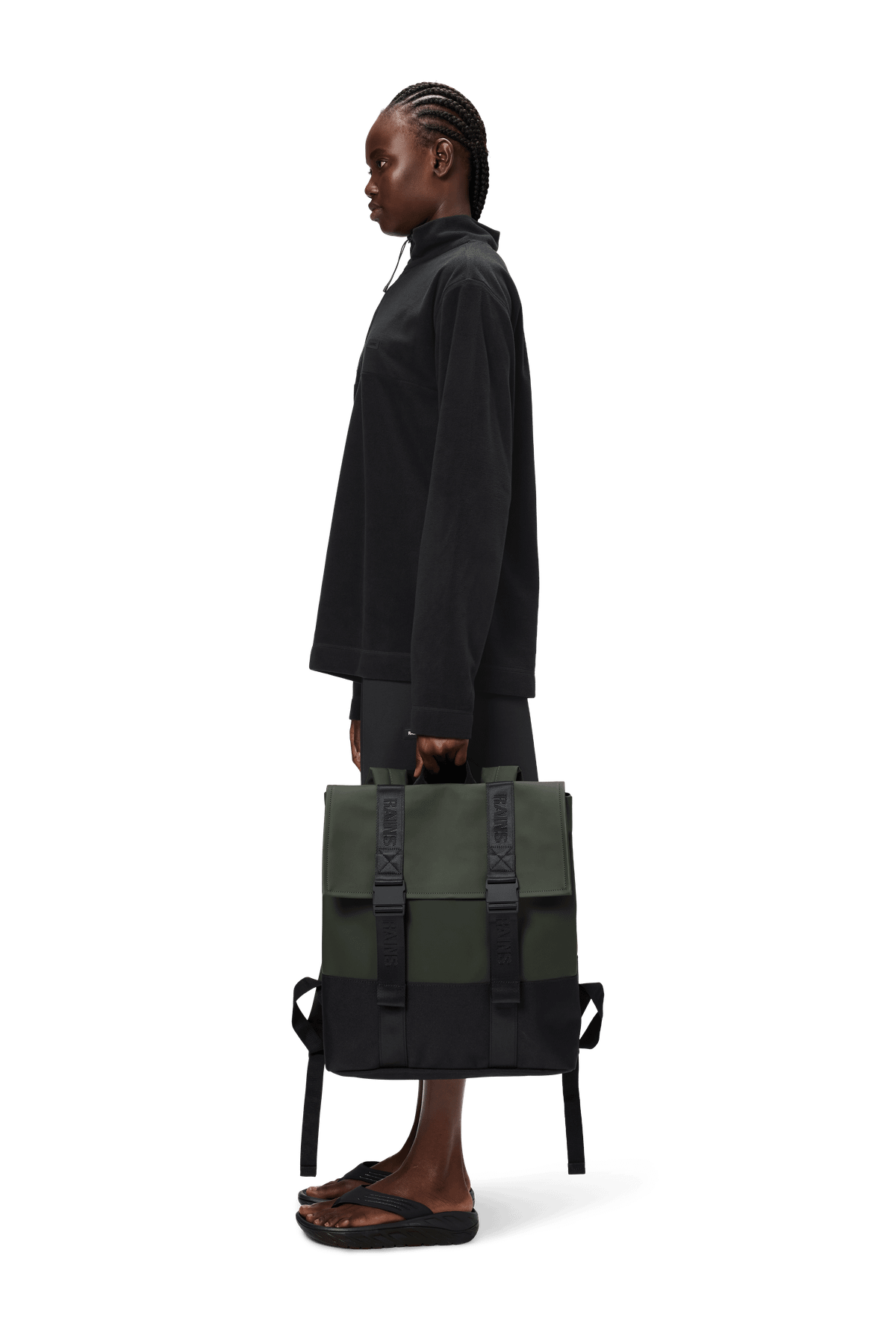 Trail MSN Bag reinterpreta la clásica mochila escolar con un estilo deportivo y urbano. Se caracteriza por una silueta limpia con correas dobles tipo cincha y cierres de hebilla. Esta mochila deportiva cuenta con un bolsillo interior para el portátil, un espacioso compartimento principal, un panel trasero de rejilla acolchado y tirantes acolchados. Esta versión de la MSN Bag de Rains adopta el estilo deportivo-funcional de la familia Trail. El bolsillo para el portátil tiene capacidad para un ordenador de 16", lo que convierte la Trail MSN Bag en un artículo básico ideal para transportar el ordenador. Trail MSN Bag está confeccionada en el tejido de PU característico de Rains, diseñado para ofrecer robustez en el transporte, durabilidad y un suave acabado